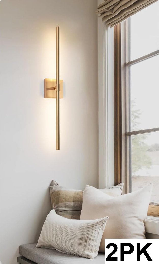 2PK gold wall sconces rechargeable led wall lights 6000K - 30" - GOLD