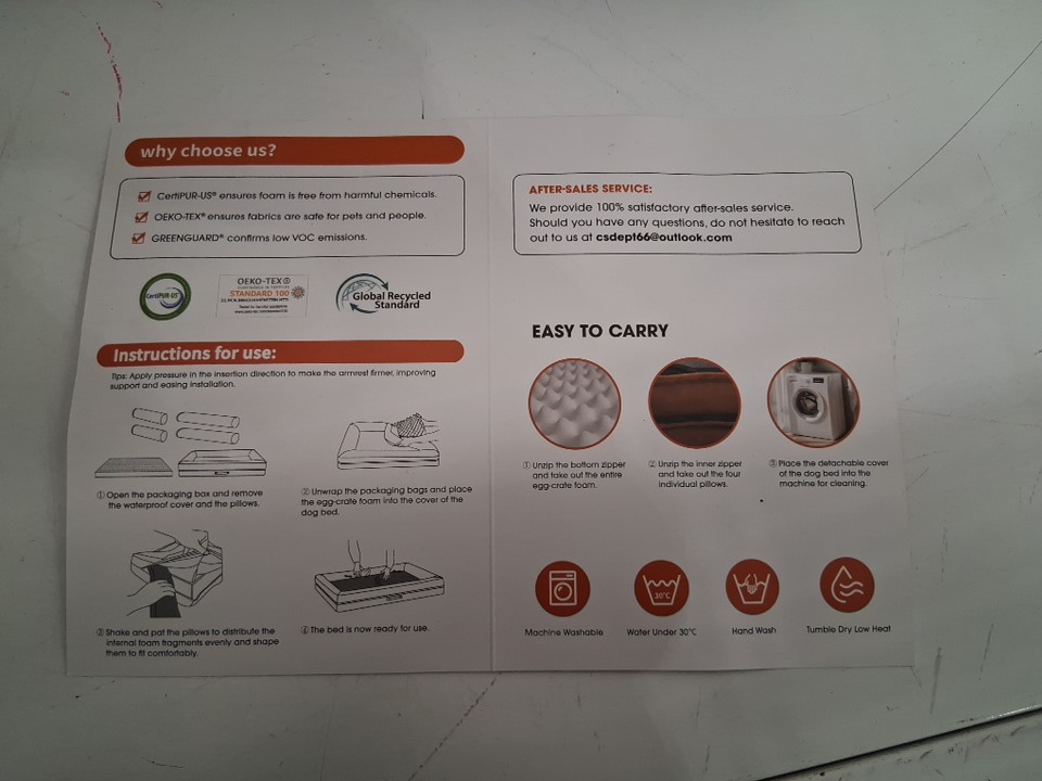 Orthopedic Egg Foam PET Dog Bed with Removable Washable Waterproof Cover - 54" X 36" X 8" - GREY