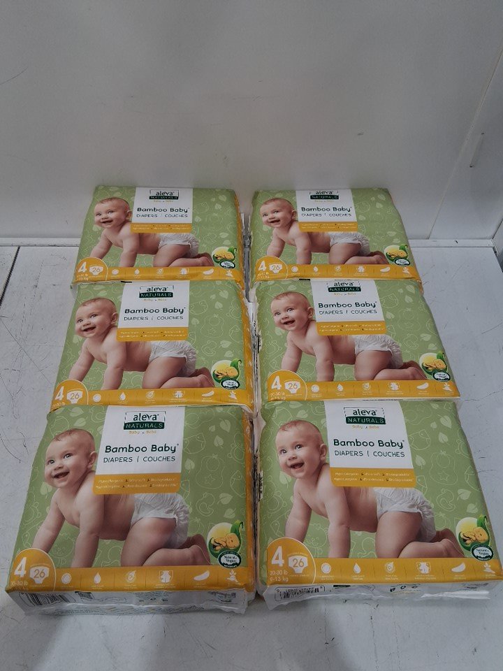 156PK ALEVA naturals hypoallergenic sensitive skin friendly biodegradable bamboo baby diapers - size 4 - white (model: 37851)