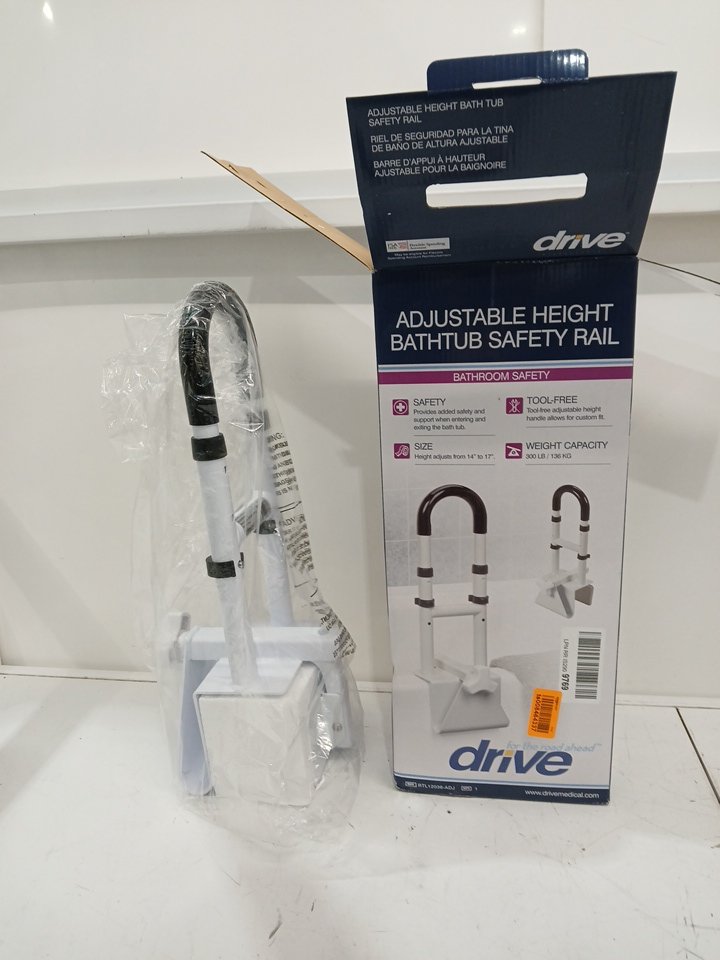 DRIVE MEDICAL ADJUSTABLE HEIGHT & WIDTH BATHTUB SAFETY RAIL - adjustable height from 14.5"- 17" x 3" - 7" - 300lbs capacity - WHITE - (MODEL: RTL12036-ADJ)