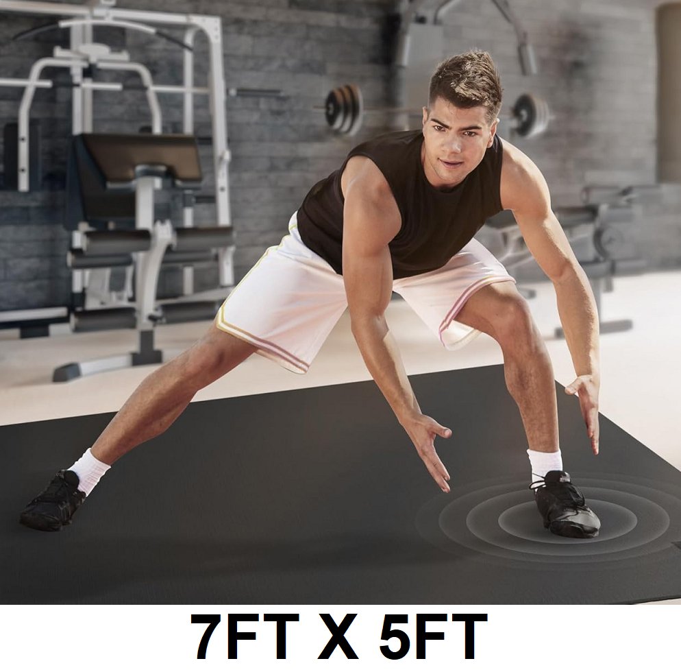 Gymcope Large Exercise Mat with Extra Thick, High-Density Non-Slip Material for Home Gym and Fitness, Shoe-Friendly Design with Storage Straps & Carry Bag - 7FT X 5FT - Black (Model: EM75)