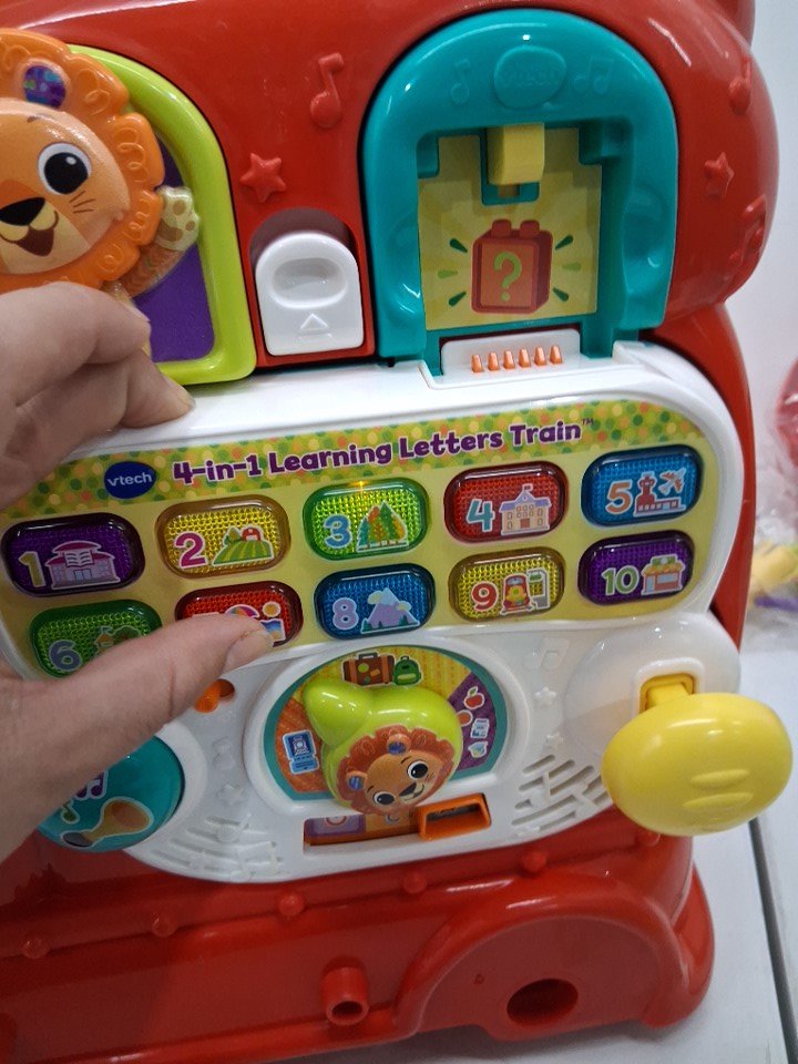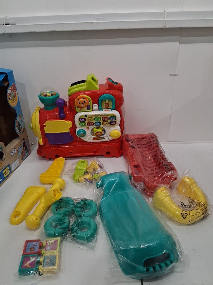 VTECH 4-IN-1 FRENCH VERSION SIT TO STAND LEARNING LETTERS TRAIN WITH TOY BLOCKS & 15+ ACTIVITIES (MODEL: 80-547800)