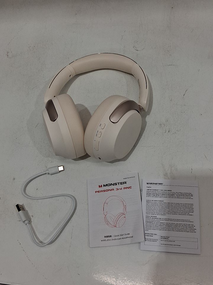 Monster Persona 3rd ANC Wireless bluetooth Headphones - Noise Cancelling, 70 hour battery - white (model: mh22231)
