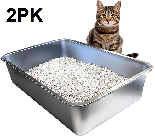 2PK INVENHO STEEL cat litter box - 24" x 15" - silver