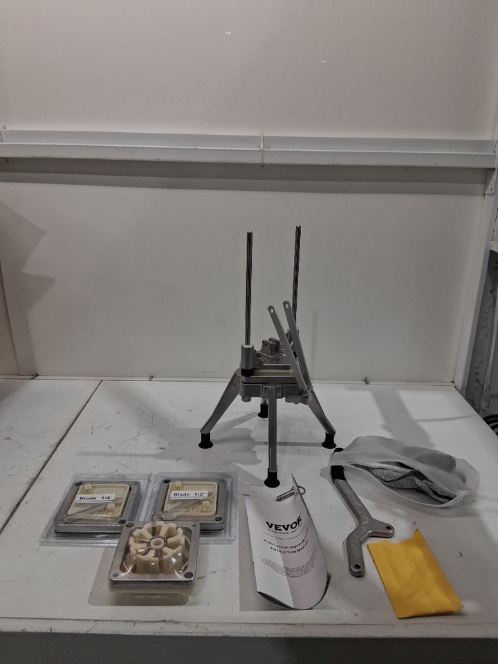VEVOR Commercial 1/4″ Vegetable and Fruit Chopper - with replacement blades and cut resistant gloves - silver -(model: qtj-j002x)