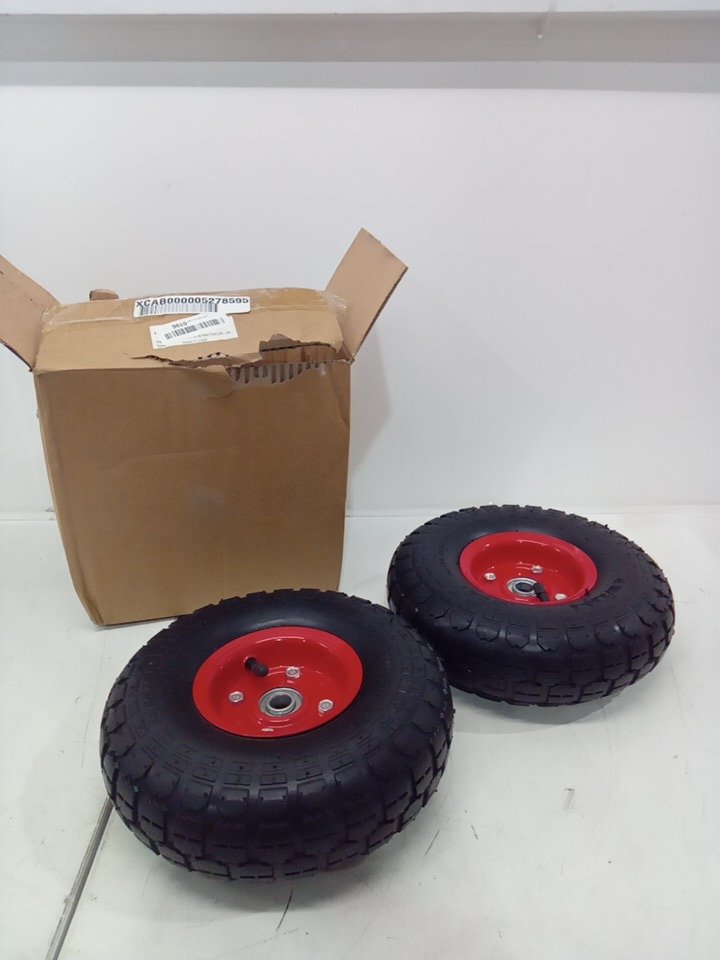 2pk PEAKTOW New 10” 4.10/3.50-4” All Purpose Utility Pneumatic Air Tire on Wheel - BLACK\RED - (MODEL:PTW0001)