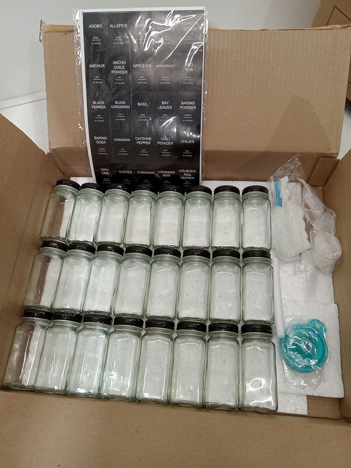 24PK AISIPRIN EMPTY GLASS SPICE JAR CONTAINERS WITH LABELS - CLEAR/BLACK LIDS/LABELS