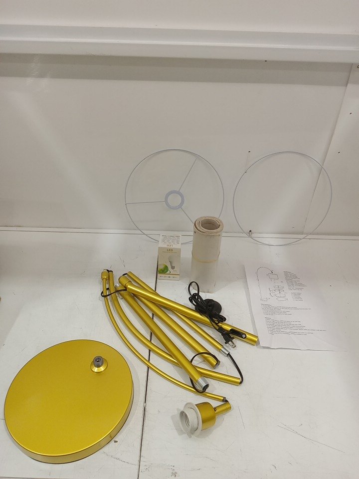 OFOWEIOUY Arc Modern Tall Standing Lamp with Adjustable Drum Lampshade and On/Off Foot Switch - 71" - gold - (model:1FL-330)