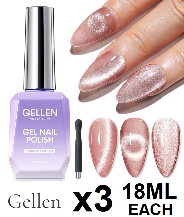 3 Gellen Cat Eye UV soak Gel Nail Polish with magnet - 18ml each - Pink Glitter (Model: M176)