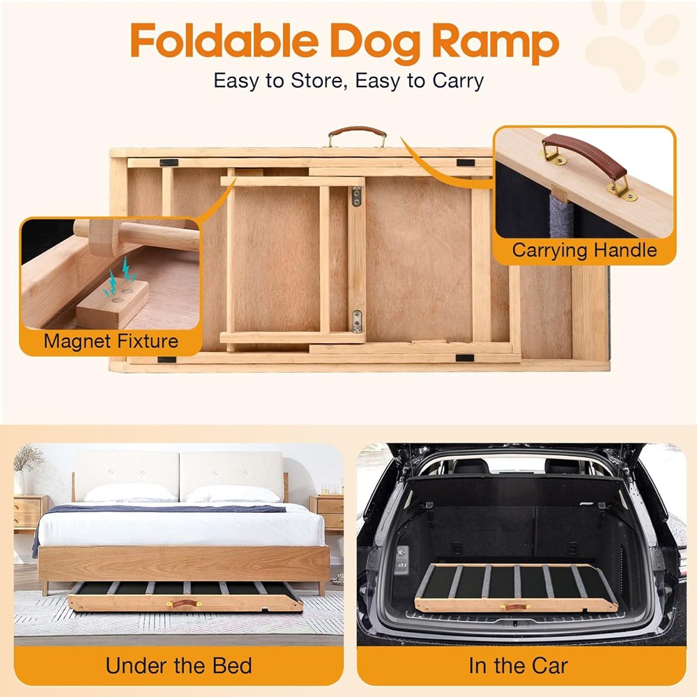 AIMSEAL foldable Non-slip Traction Pet Ramp - 39.3" x 17.1" - 200lbs - Black/Wood (Model: DR7.0)