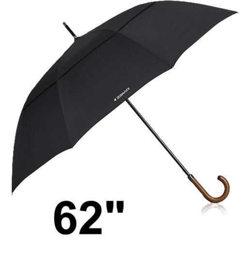 Large Coverage Umbrella with J Handle - 62" - Black (Model: ‎J6A2X)