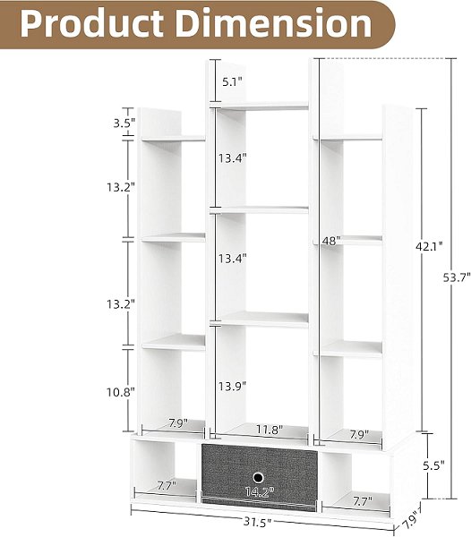 Vermess Tree Shape standing book shelf - multiple sizes - vintage brown - (Model: H0101589-Vintage)
