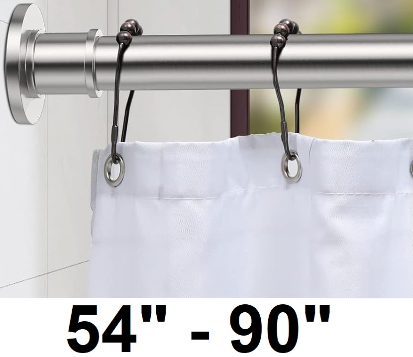 briofox industrial never rust non-slip shower tension curtain rod - 54" to 90" - 1" thick - brushed nickle