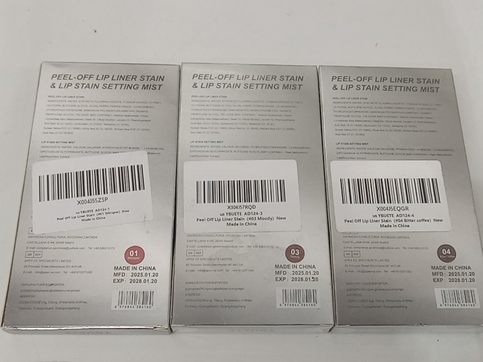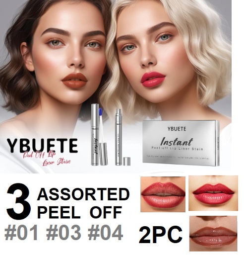 3 Assorted 2PC YBUETE PEEL OFF LIP LINER with setting mist - #01 Whisper, #3 Moody, #04 bitter coffee