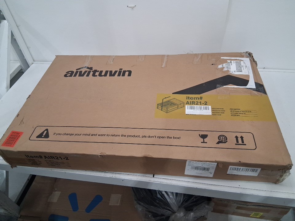 enclosure has some stains on wood and some cracks. One panel of plexi-glass has a small crack