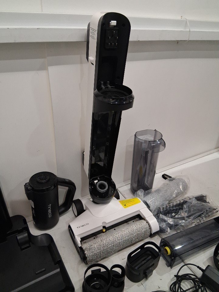 item tested for power, item shows light signs of use on the installed spinning brush head, the rest of the item appears in almost new condition, there is light evidence of water droplets in the canister, as well as light amount of water that was spit our when turned on, brush head spins when tested