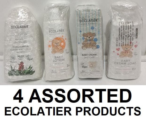 4 ASSORTED ECOLATIER PRODUCTS - MICELLAR WATER(250ML), BABY LOTION (150ML), BABY CREAM(100ML) & BABY CREAM SOAP (250ML)