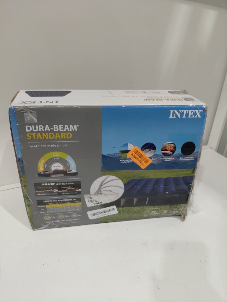 INTEX DURABEAM STANDARD DOWNY AIR MATTRESS WITH 300LB WEIGHT CAPACITY - 10" full - blue/GREY (MODEL: 64758E)