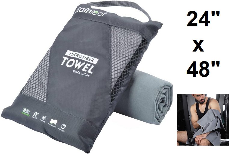 Rainleaf Microfiber Towel Perfect Travel & Gym & Camping Towel - 24" x 48" - grey