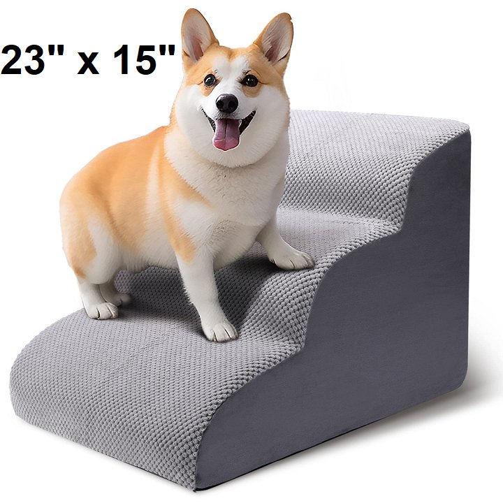 NIUBYA 3-TIER FOAM PET STAIRS WITH COVER, 23" x 15" x 15" - GREY