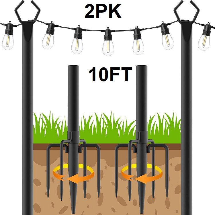 2pk string light poles for outside patio - 10ft - black (model: ca-slp-n2)