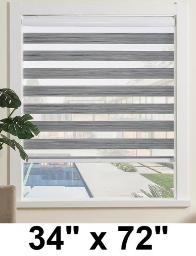 JIANGPIN TEXTILE Cordless Zebra Blinds - 34" X 72" - GREY (MODEL: JP-ZB/Cordless/C-3472)