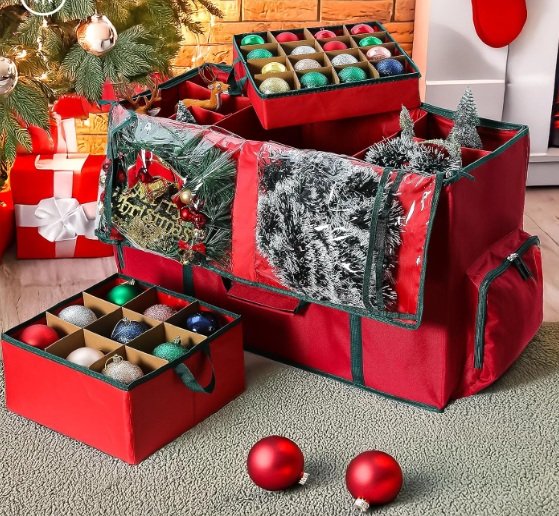 BIEBOS 2-In-1 Christmas Decoration AND Ornament Organizer - hold up to 73 ornaments - adjustable space - red (‎model: CT-Xball-Black)