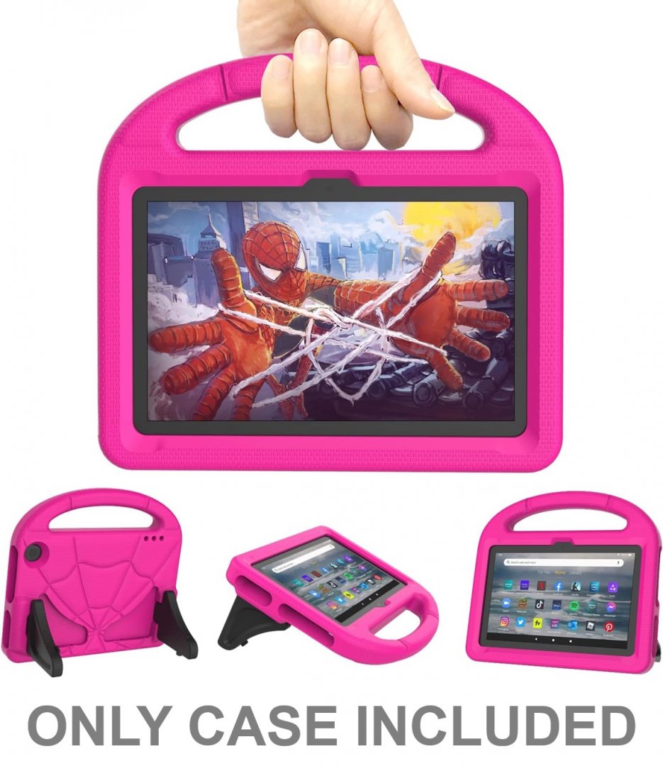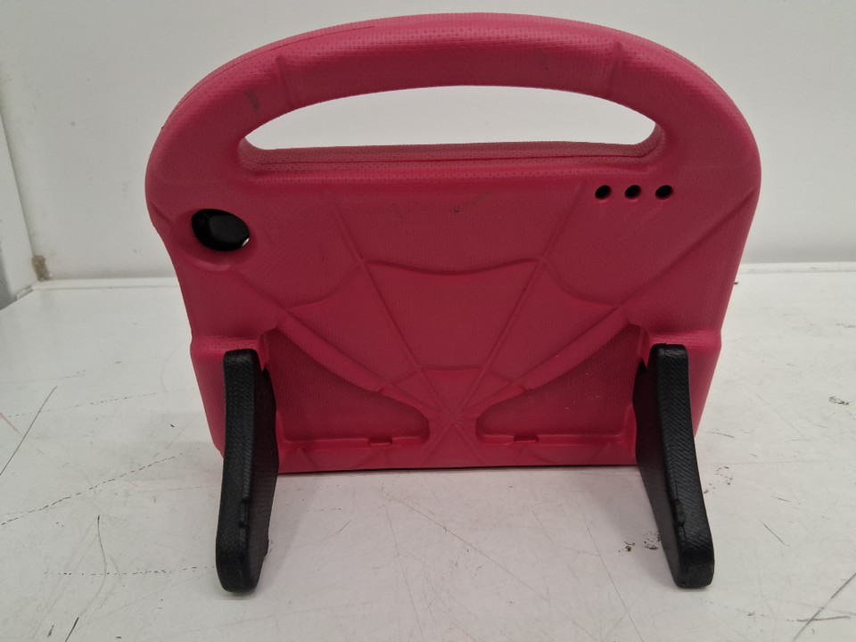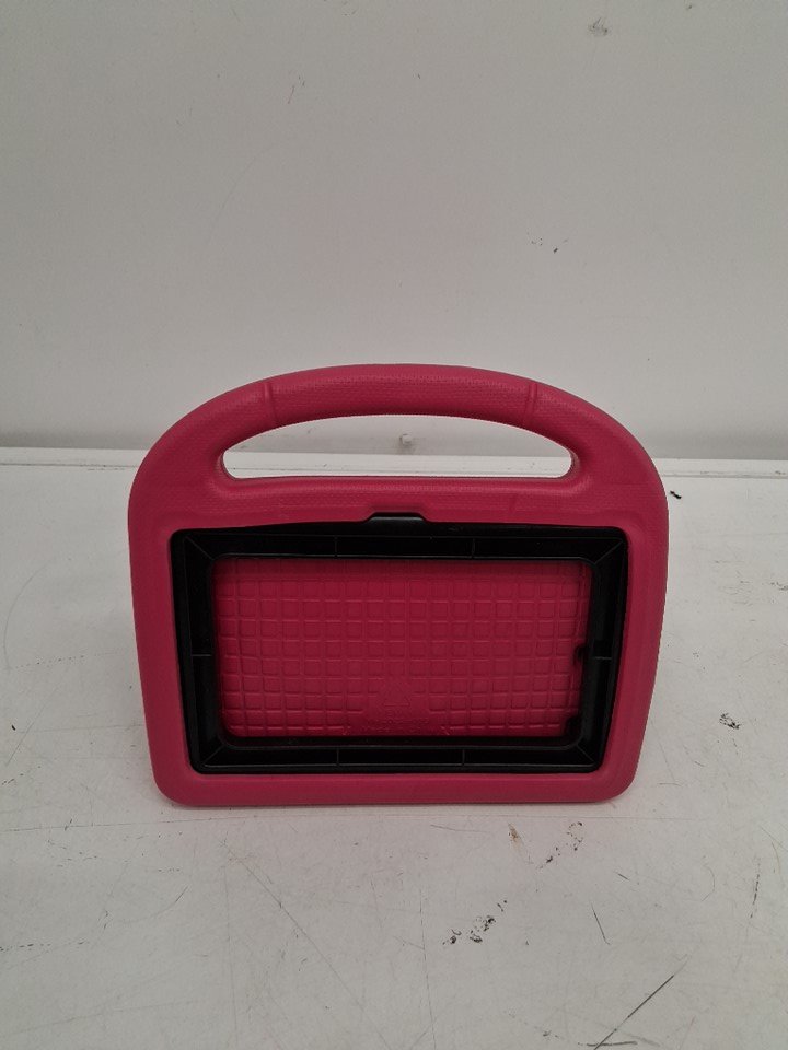 The case is compatible with Amazon Fire 7 Tablets. There are some minor stains and scuffs consistent with previous use.