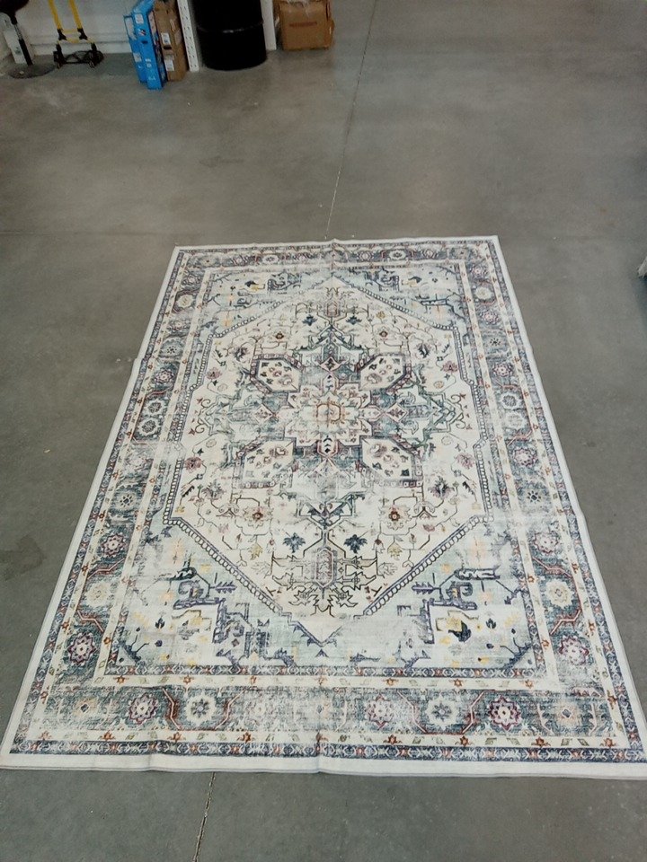 Medallion Washable Non-Slip Area Rug with Vintage Floral Boho Design, Low Pile Faux Wool, TPR Backing and Machine-Washable & Pet-Friendly - 9FT X 6FT - Beige White
