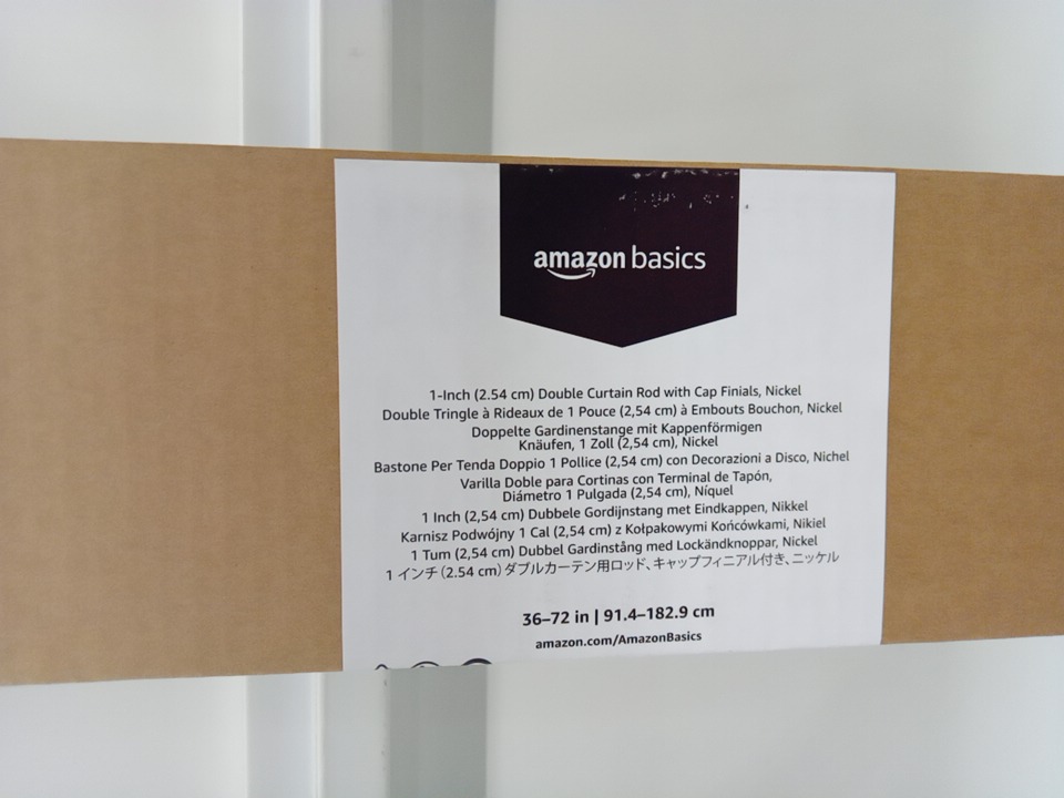 x2 AMAZONBASICS 1" THICK DOUBLE CURTAIN RODS WITH CAP FINIALS - 36" - 72" - NICKEL