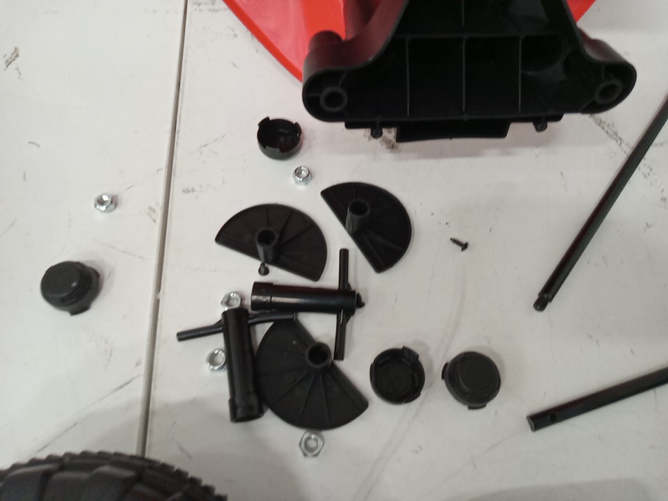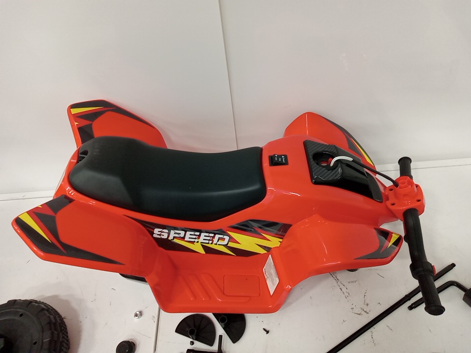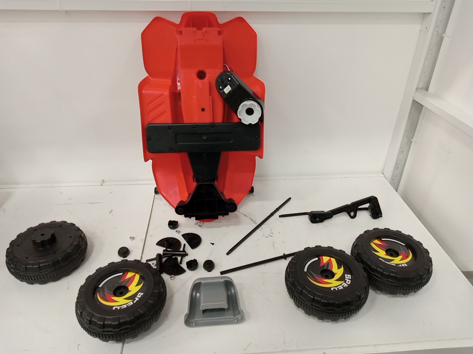 There are assembly marks, scuffs present from previous use. however it is missing the charger. (can be bought separately) May require additional hardware for full assembly. Tested for power.