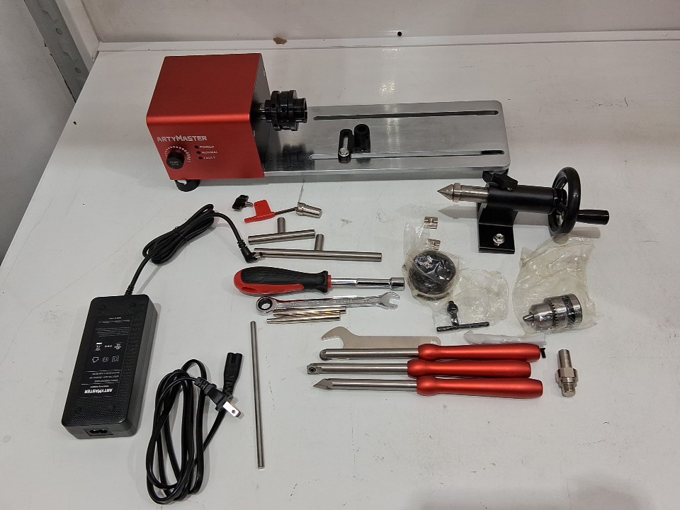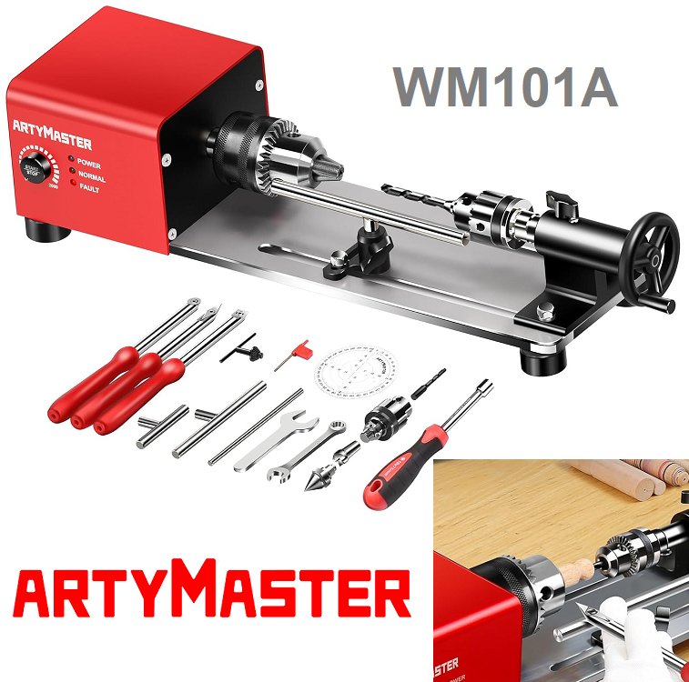 ArtyMaster Mini Wood Lathe - 0-2000RPM, DIY Woodworking turning tool SET - red (model: WM101A)