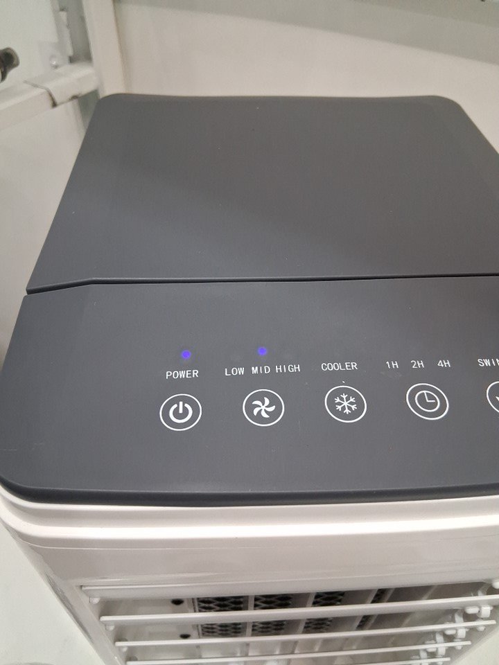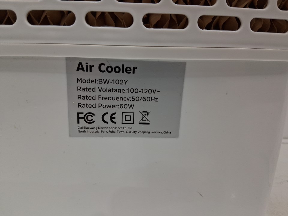 Portable 3-speed evaporative air cooler with remote control - 7.5L - 60w 100-120v - 30" - white/grey (model: bw-102y)