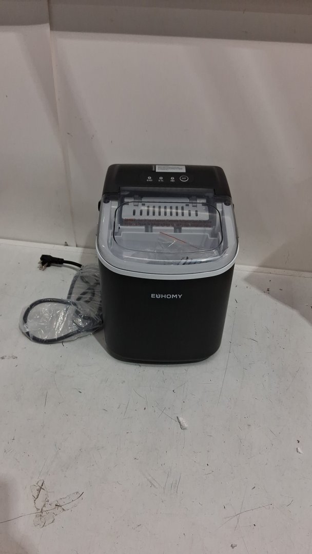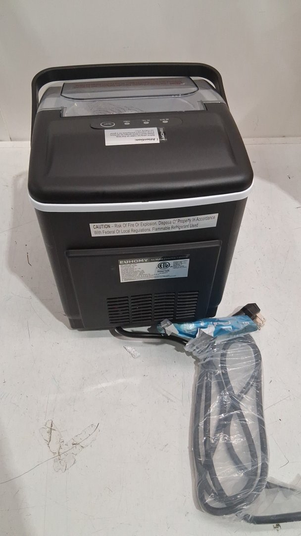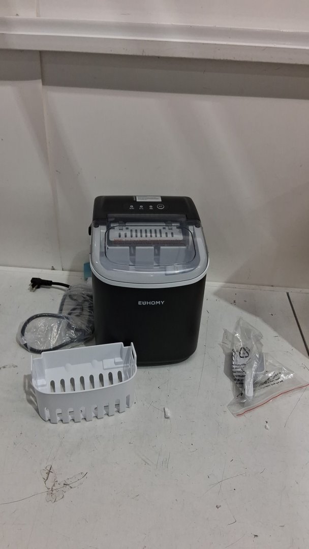 EUHOMY Countertop Ice Maker Machine with Handle/ Basket and Scoop - MAKES 26LBS Per Day - BLACK (MODEL: IM001-Bbl-CAEH)