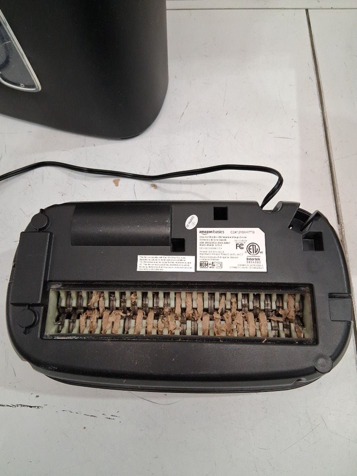 The item has paper leftover inside shredder indicates previous use. Tested for basic power only.