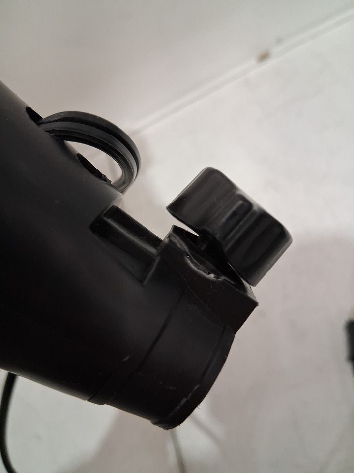 the product was tested for function and power, the product was also discovered to be covered in dust, dirt, and scratches, this can be cleaned. we also found that one of the screws use to hold the pole and fan together is slightly broken, we believe this can be fix, please see photos for more details