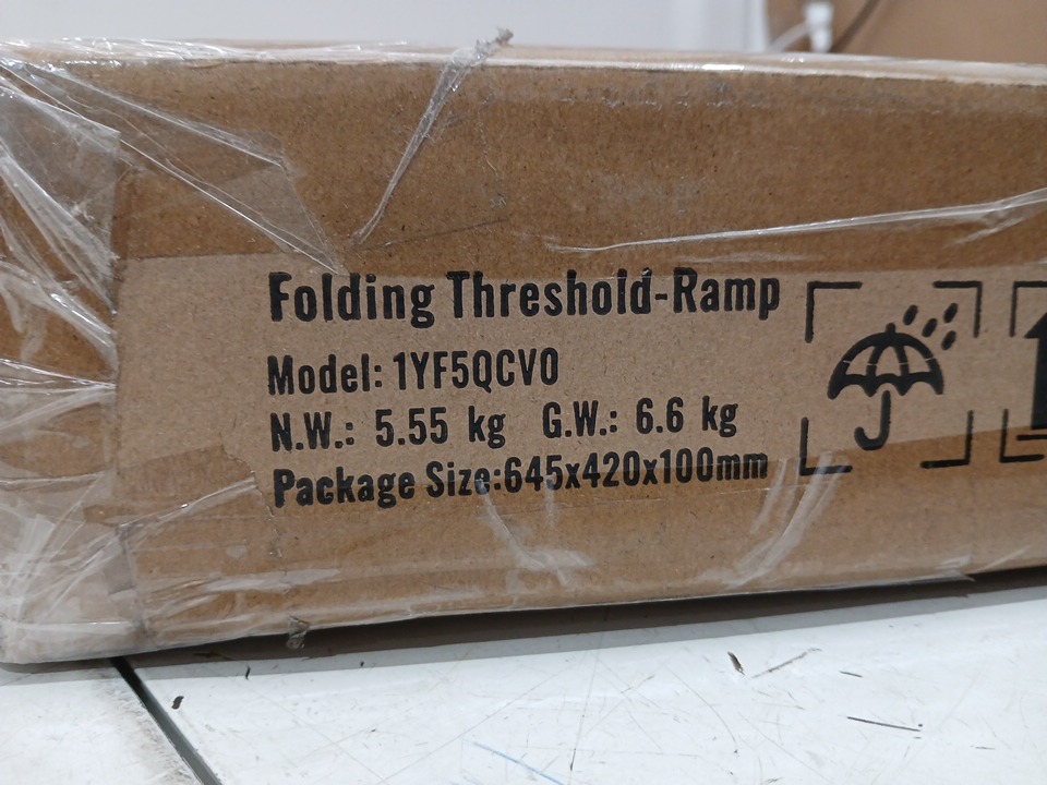 vevor portable folding threshold ramp for wheelchairs and mobility scooters 800lbs capacity - 29" x 24" x 2" - silver/black (model: 1yf5qcvo)