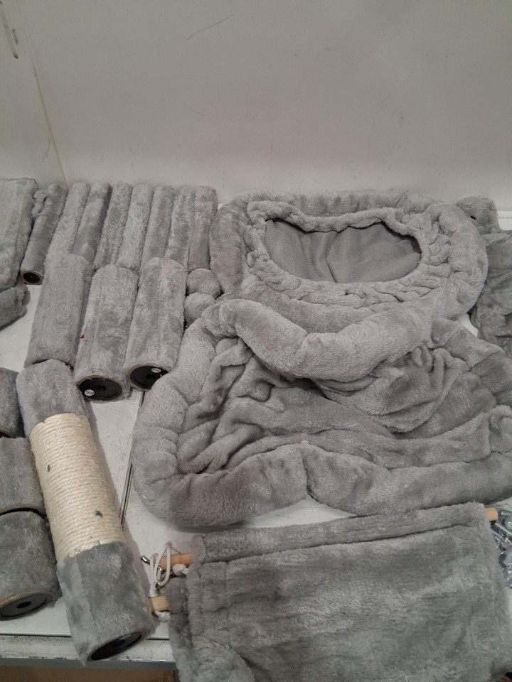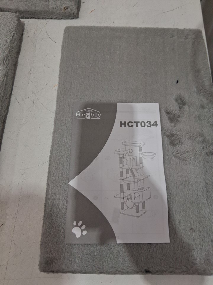 Heybly Cat Tree Tall Tower with Perches Condos Hommocks and Basket - 71" - Grey - (Model: HCT034W)
