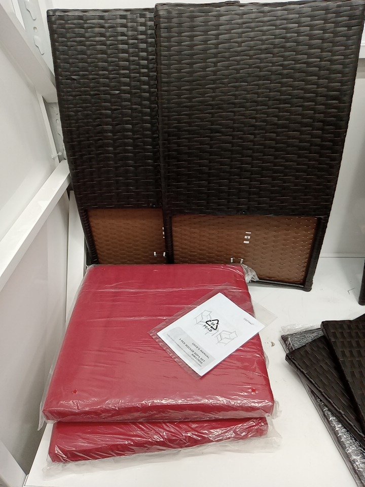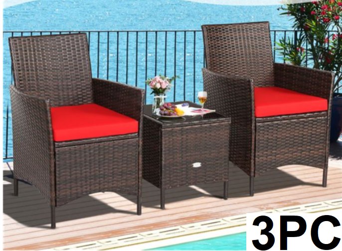 3PC COSTWAY PATIOJOY Wicker Patio Set with COFFEE TABLE - 23'' x 21'' x 30.5'' - BROWN/red (MODEL: HW67050RE)
