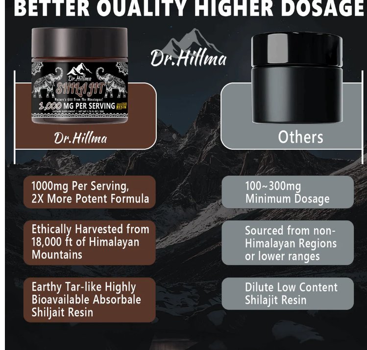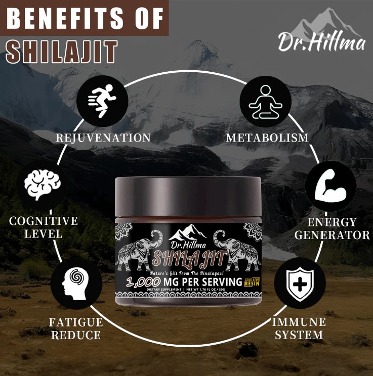 dr.hillma Shilajit Purest Himalayan Shilajit Resin - Gold Grade 100% Pure Shilajit with Fulvic Acid & 85+ Trace Minerals Complex for Energy & Immune Support - 50G