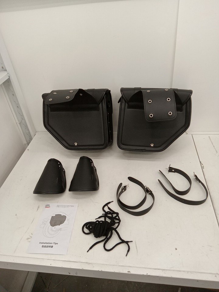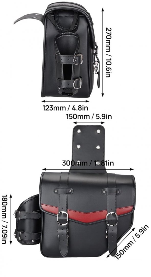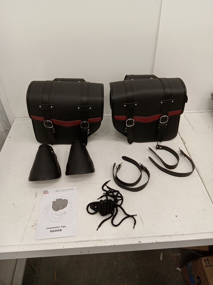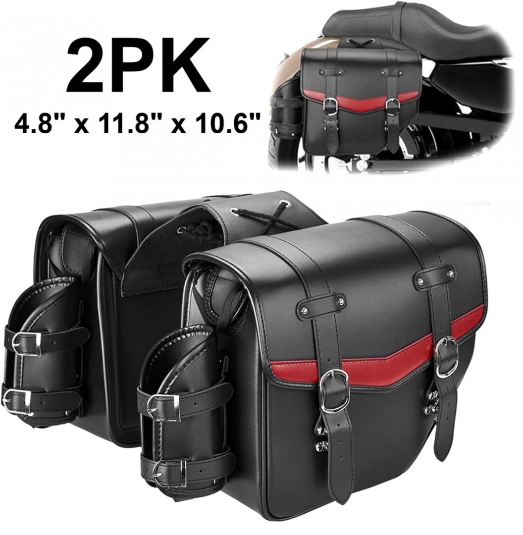 2PK MAKUTU Faux Leather Motorcycle Side Travel Bag Storage Pack - 4.8" x 11.8" x 10.6" - Black/Red (Model: