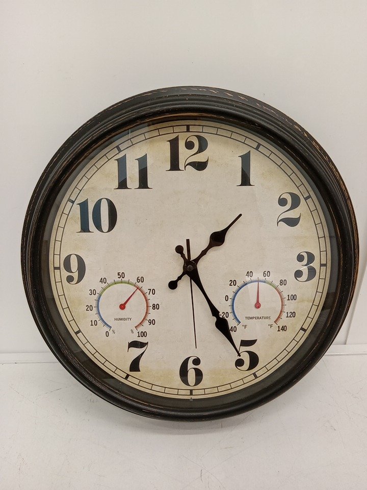 zyzamay Vintage Indoor/Outdoor Waterproof Wall Clock with Thermometer & Hygrometer - 16" x 16" x 1.5" - 16''th Blackgold (Model: 16N-HT-BG-01)