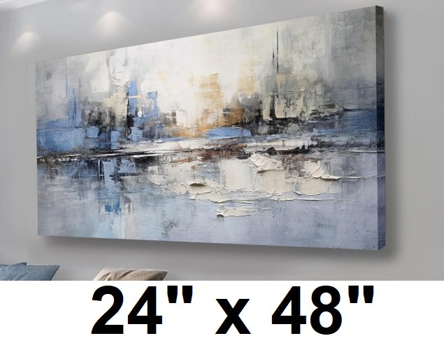 VHMING Abstract Wall Art Wall Decor - 24" X 48" - BLUE & GREY (MODEL:B0D8132CCN)