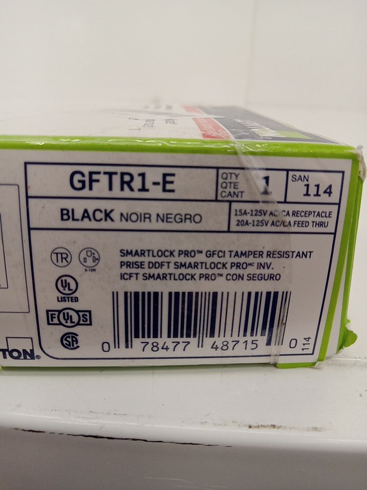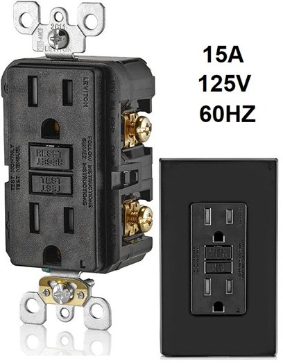 leviton smartest self-test smarklockpro slim tamper resistant receptacle with led indicator - 15A/125V/60HZ - BLACK (MODEL: GFTR1-E)