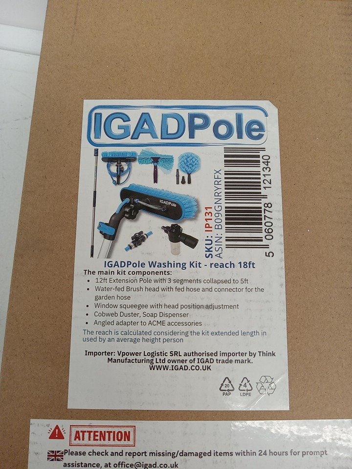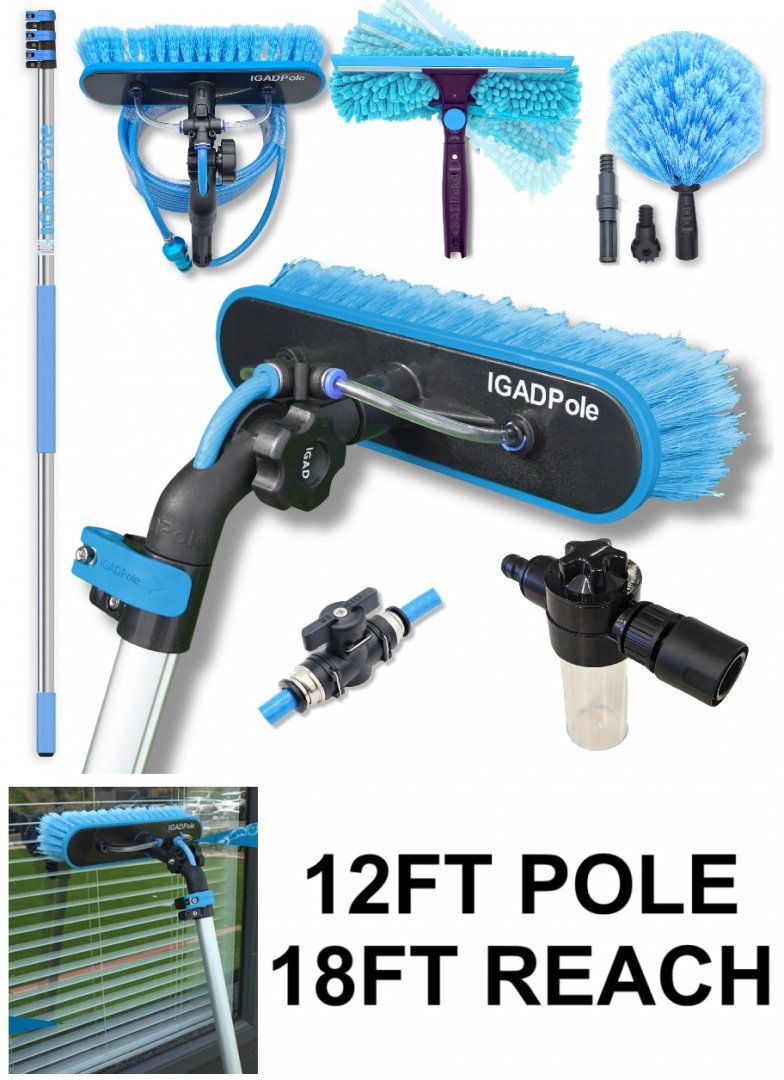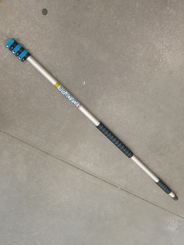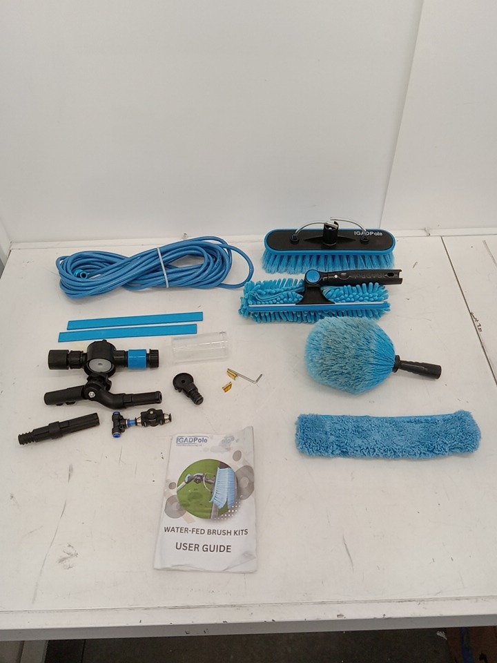Some water in tube, water marks on pole and dust on duster indicate previous use.