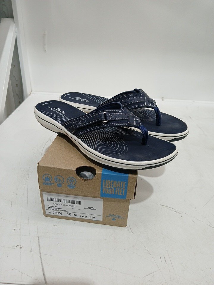 women's Clarks breeze sea flip flops sandals - 10 - NAVY synthetic (Style:25506)