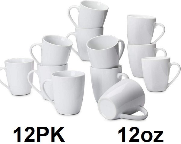 12pk amazon basics porcelain ceramic coffee mug set - 12oz 0 white