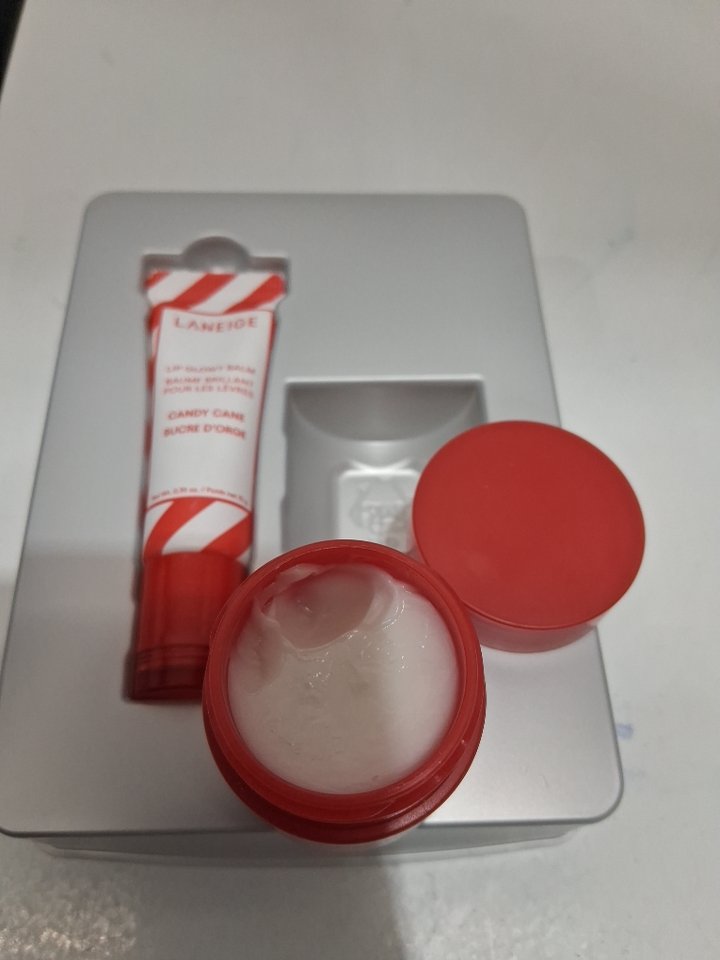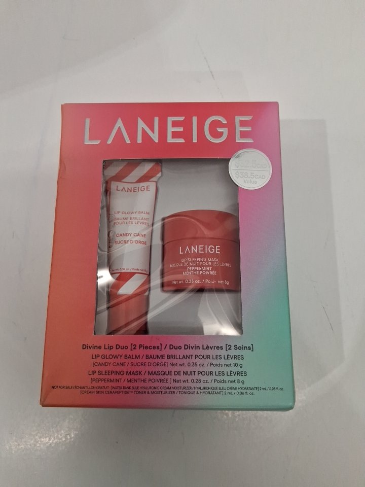 2PC Laneige Divine Lip Duo with Lip Glowy Balm and Lip Sleeping Mask - 10g Lip Balm & 8g Lip Mask - candy cane and peppermint