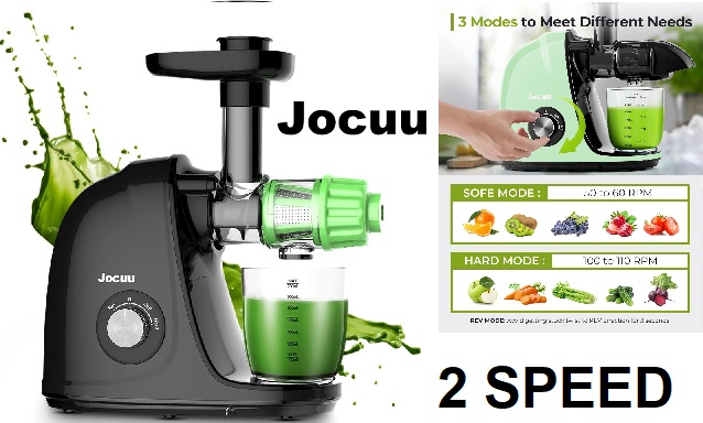 Jocuu Slow Masticating Juicer with 2 Speed Modes - Quiet Motor & Reverse Function - Black (MODEL: ZM1503)