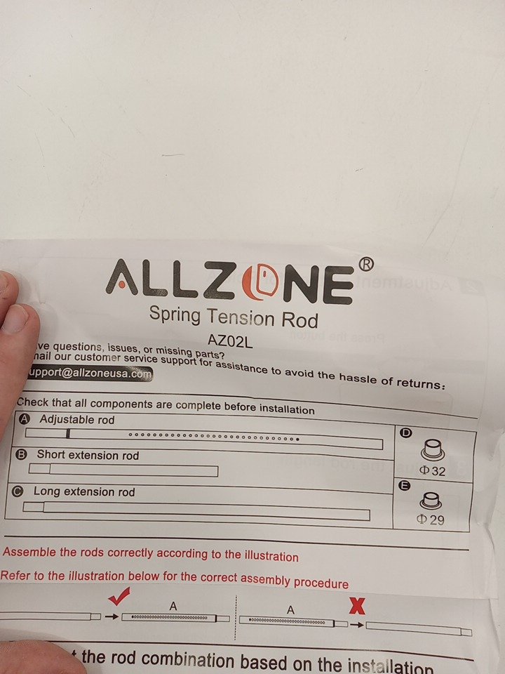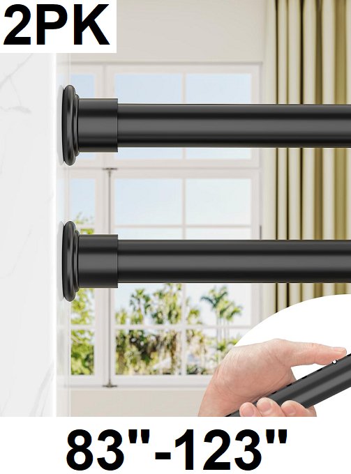 ALLZONE SPRING tension adjustable curtain rod - 83"-123" - black (model: az02l)